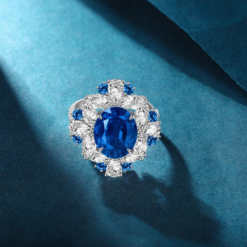 实验人工培育蓝宝石蛋形6克拉闭口戒指